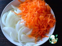 Лук очистить и нарезать полукольцами, морковь очистить и натереть на крупной терке. |