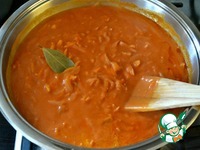 Дать хорошо разойтись и довести соус до кипения. Положить лавровый лист. |