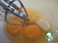 В яйца добавить сахар и мёд. |