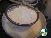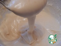 Добавить просеянную муку и разрыхлитель, хорошо перемешать тесто. Оно будет как густая сметана. |