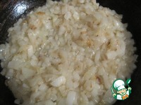 Лук обжариваем и смешиваем с рублеными вареными яйцами. |