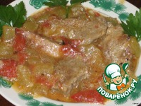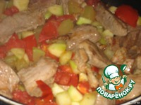 К мясу добавить порезанный помидор, слегка обжарить. |