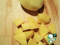 Картофель очистить и нарезать кубиками размером 2 см. |