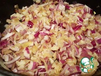 Нарезать красный лук. Добавить в кастрюлю. Перемешать. |