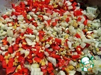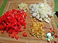 Измельчить в это время сладкий перец, имбирь, лук, чеснок, перец чили. |