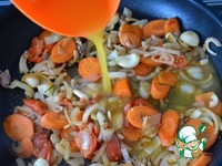 Влить свежевыжатый апельсиновый сок и добавить тертую цедру апельсина. Потушить все минуты 3-4. |
