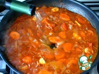 Затем добавить томатную пасту и вино. |