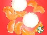 Подготавливаем наши ингредиенты: 2 зефира и предварительно очищенный мандарин. |