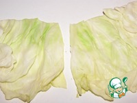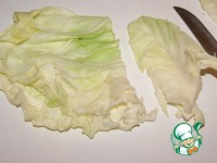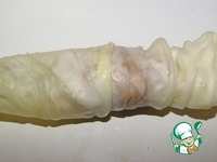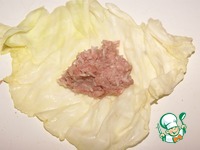На ладонь левой руки кладём капустный лист, поместить фарш на край листа... |