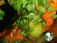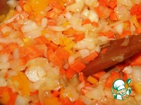 В сотейнике протушить лук 2 минуты. Добавить морковь и перец тушить все вместе еще 3-4 минуты. |