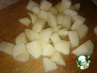 Картошку почистить, нарезать небольшими кубиками. Добавить к сердечками. Проварить 5 минут. |