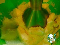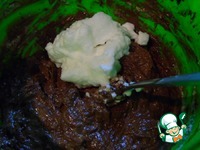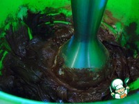 Продолжая взбивать добавляем какао, муку, разрыхлитель и цедру с половины апельсина, затем добавляем тыкву со всей жидкостью. |