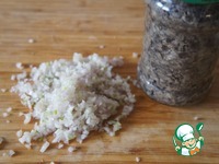 Лук измельчить. Грибы нарезать очень мелко (у меня была домашняя заготовка - грибная икра). |