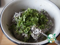 Добавить по вкусу измельченного чеснока, зелени, соли, перца и молотого кориандра. |