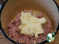 Ветчину, масло и сливки хорошо взбить в блендере. Сливок может понадобиться и меньше, начинка не должна быть жидкой. |