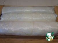 Вот три таких рулета у нас получится. Надо отправить их в холодильник часа на 2, чтобы они застыли. |