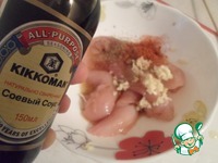 Смешиваем Соевый соус, мед, паприку, кориандр, курицу и чеснок. Можете отправить мариноваться в холодильник, либо сразу приступать к запеканию. |