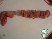 На деревянную шпажку нанизываем филе как показано на фото. |