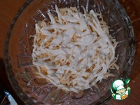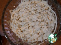 Промазать майонезом, вообще все слои нужно промазывать, но т. к. у меня есть противники майонеза, я мажу только 3 слоя, так не менее вкусно |