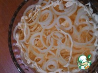 Выложить аккуратно нарезанный апельсин, потом тонко нарезанный лук. Только аккуратно, чтоб не сдавить, салатик должен оставаться воздушным. Промазать |