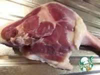 В готовое блюдо пойдут ножки без кожи. Если идти простым путем, то шкурку сдираем с уже готовых ножек и будем готовы к тому, что соус на треть будет состоять из жира, который с него надо будет счерпать.
