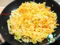 Шинкуем капусту не очень тонко, посыпаем солью и слегка жамкаем. Выкладываем к овощам, перемешиваем, накрываем крышкой и тушим минут десять на среднем огне |