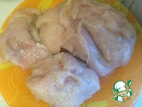 Режем куриное филе на порционные куски. Если необходимо отбиваем. |