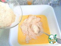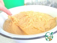 Выливаем нашу смесь в ёмкость для замешивания теста. Высыпаем муку с пряностями и перемешиваем. |