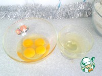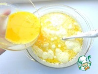 У нас в миске два целый яйца и два желтка. Перемешиваем их вилкой до однородной массы. |