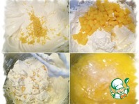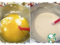 Пюре манго с растворённым желатином немного остудить, влить в сливочную смесь и лопаточкой перемешать до полного соединения. |