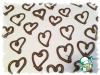 Когда верх торта застынет, достать его из формы, сделать надрезы в разныx местах и вставить туда шоколадные сердечки. |