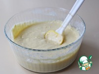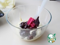 Добавить растопленное сливочное масло, йогурт ( я использовала простую без добавок активию), и все вместе взбить до однородности. |
