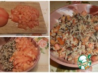 Помидор очищаем от кожицы и нарезаем кубиком. В чашку выкладываем сваренный рис и нарезанный помидор. Солим. Перемешиваем. Начинка для зраз готова. |