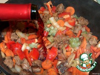Добавить лук и морковку, обжарить. Потом перец и сельдерей. |