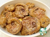 Стейки положить в глиняную форму, залить овощным соусом и закрыть крышкой или фольгой. Запекать в духовке при t= 180 примерно 40 мин. |