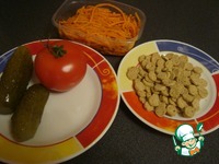 Описание: Одна из вариаций салата с морковью по-корейски и курицы. Сочетание соленого огурца и свежего помидора, обжаренная куриная грудка с соевым соусом Kikkoman - придают салату пикантность. Предлагаю вашему вниманию рецепт, который может стать приятным дополнением на праздник или просто на ужин.