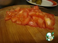 Помидор режем на небольшие кубики, но сильно не мельчите, чтоб не ушел весь сок. |