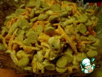 Собираем все составляющие, добавляем майонез по вкусу и перед подачей присыпаем мягкими сухариками. |