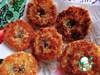 Разогреваем масло, можно сливочное, но я жарила в растительном. Жарим кольцо с двух сторон до желаемой золотистости. Продолжаем жарить остальные кольца. |