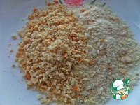 Готовим в отдельной посуде панировку №2, смешиваем пополам дроблёный орех любой с мукой. |
