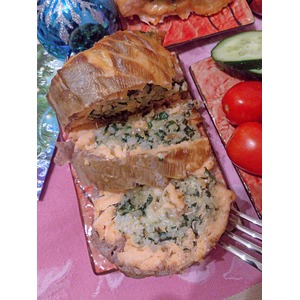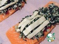 Описание: Удивительное и гармоничное сочетание печёной семги, отварного риса, золотистых зернышек кунжута, зелёного шпината и совсем немного плавленного сыра. Всё это очень вкусно и полезно, а сёмга украсит любой праздничный стол. Приготовьте это блюдо и Вы удивитесь как легко оно готовиться.