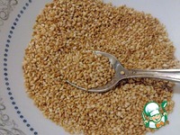 Семечки кунжута подсушить до золотистого цвета на раскаленной сковороде, без масла. |