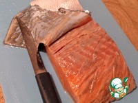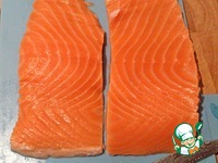 Филе семги разрезать вдоль на две половины. Толщина куска должна составлять 5-7 мм. |