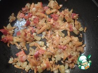 Перец и лук режем кубиком, чеснок пропускаем через чеснокодавку. Пассеруем на небольшом количестве растительного масла. |