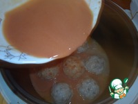 По истечении 20 минут добавляем соус к фрикаделькам и тушим ещё 20 минут. |