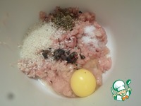 К фаршу добавляем яйцо, прованские травы, соль, рис, базилик и перемешиваем. |