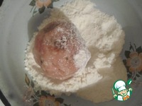 Шарик обваливаем в муке. Так делаем со всем фаршем и начинкой. |