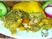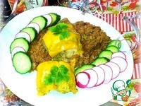 Рулет и гарнир очень сочные. К рулету использовали соевый соус Киккоман. |