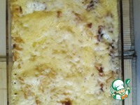 По истечении времени, корочка нашей лазаньи становится золотистой, посыпаем её оставшимся сыром и ставим ещё на 5 минут в духовку. |
