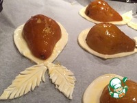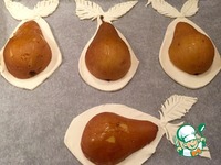 Взбейте яйцо и смажьте им тесто и сами груши!!! |